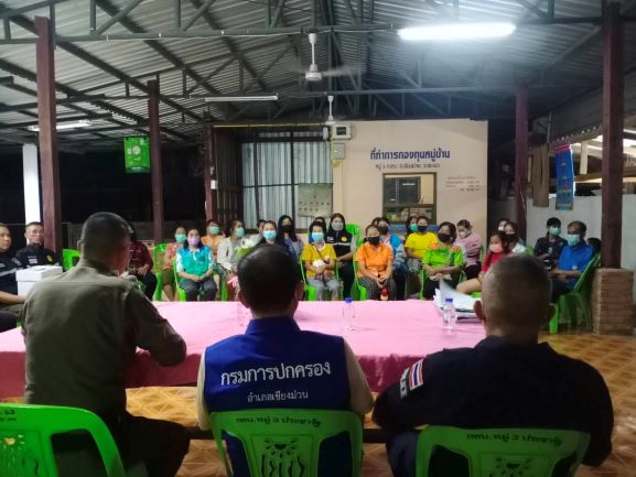 เมื่อวันที่ 23 กุมภาพันธ์ 2566 เวลา 19.30 น. พ.ต.อ.อภิรักษ์ นักไร่ ผกก .สภ.เชียงม่วน พ.ต.ท.สุพสิทธิ์ สืบแสน รอง ผกก.ป.สภ.เชียงม่วน นายเกษม มณีวรรณ ปลัดอำเภอฝ่ายป้องกัน พร้อมด้วย ชุดมวลชนสัมพันธ์ ได้เข้าร่วมกับผู้นำหมู่บ้านและเครือข่ายภาคประชาชน เพื่อดำเนินงานตามโครงการเครือข่ายการมีส่วนร่วมของประชาชนในการป้องกันอาชญากรรม และโครงการซองผ้าป่าข้อมูลข่าวสารเพื่อแจ้งเบาะแสข้อมูลผู้ใช้ ผู้เสพ ผู้ติดยาเสพติด ผู้มีอาการทางจิตประสาทและผู้ป่วยจิตเวช เพื่อนำเข้าสู่กระบวนการบำบัด ที่หอประชุมหมู่บ้านบ้านสระ หมู่ที่ 3 ต.สระ อ.เชียงม่วน จ.พะเยา