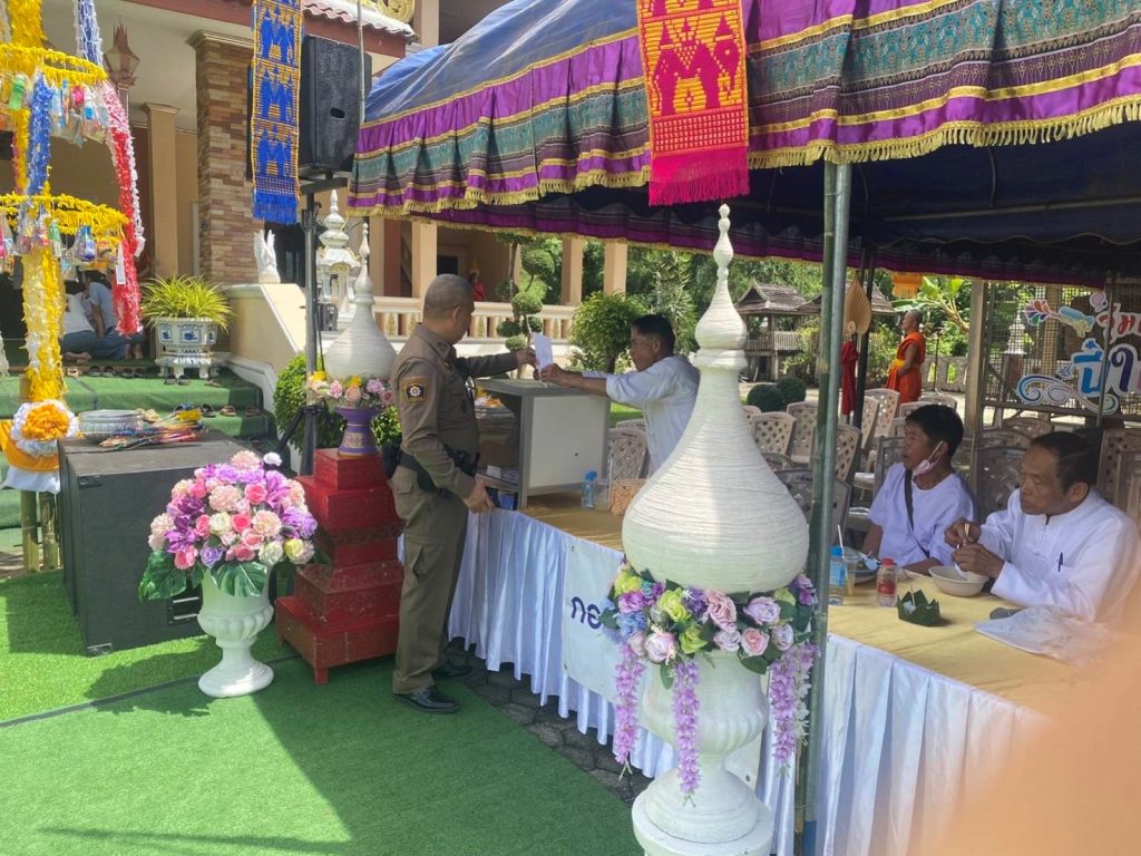 เมื่อวันที่ 2 ต.ค.2566 ร.ต.อ.นพดล ทัพเลื่อน รอง สวป.สภ.เชียงม่วน พร้อมเจ้าหน้าที่ตำรวจสายตรวจรถยนต์ รถจักรยานยนต์ ได้เป็นตัวแทนผู้บังคับบัญชา ร่วมงานถวายทานกฐิน ณ วัดไทยสุภาพ ม.5 ต.เชียงม่วน อ.เชียงม่วน จว.พะเยา และอำนวยความสะดวกการจราจรให้แก่ประชาชนที่เดินทางมาร่วมงานเป็นไปด้วยความเรียบร้อย