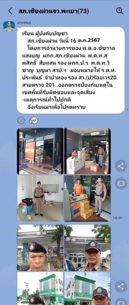 ช่วงวันที่ 1 – 31 ต.ค.2567 ร.ต.อ.นพดล ทัพเลื่อน รอง สวป.ฯ ร.ต.ต.ถวิล สมหมาย รอง สว.(ป.)ฯ, ร.ต.ท.ประพันธ์ จำปาทอง รอง สว.(ป)./ร้อยเวร 2-0 สายตรวจรถยนต์ ทำหน้าที่สับเปลี่ยนหมุนเวียนยออกตรวจ ในพื้นที่รับผิดชอบ ตรวจจุดเสี่ยง จุดล่อแหลมธนาคาร ร้านทอง ร้านสะดวกซื้อ เพื่อป้องกันเหตุ สร้างความอุ่นใจ และรักษาความปลอดภัยให้แก่ประชาชน เหตุการณ์ทั่วไปปกติ